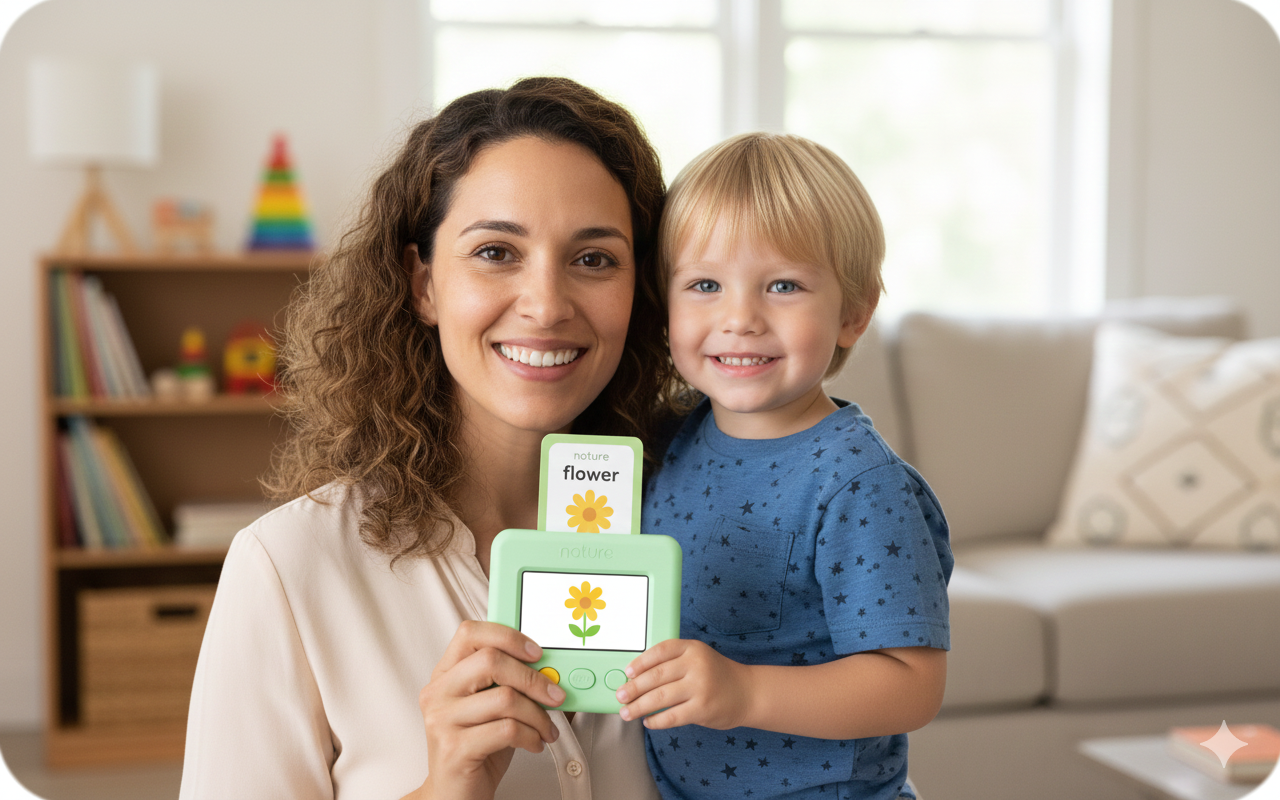 Las tarjetas parlantes de Speako han convertido las tardes en casa en una clase de idiomas divertida. Mi hija ya nombra colores y animales en inglés.